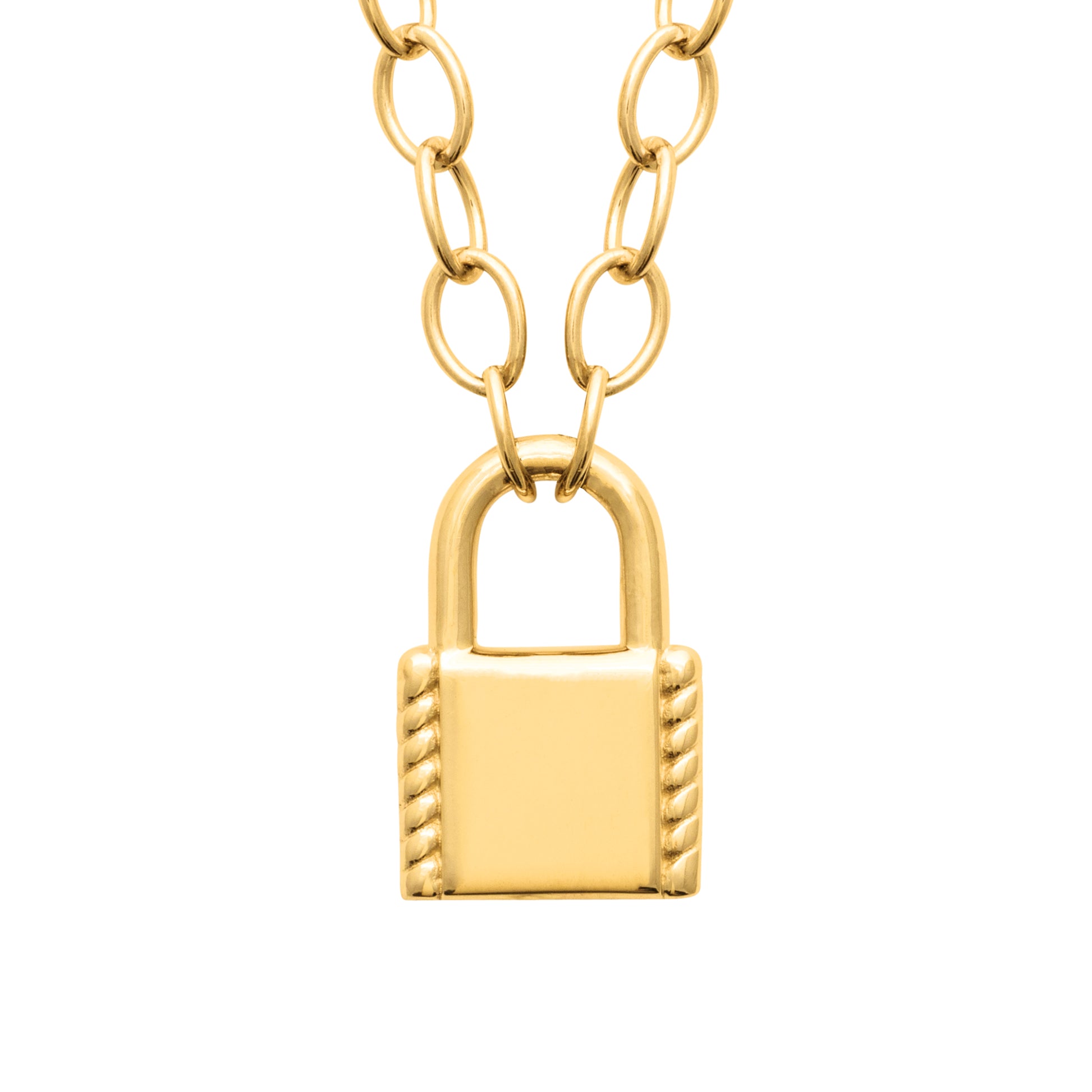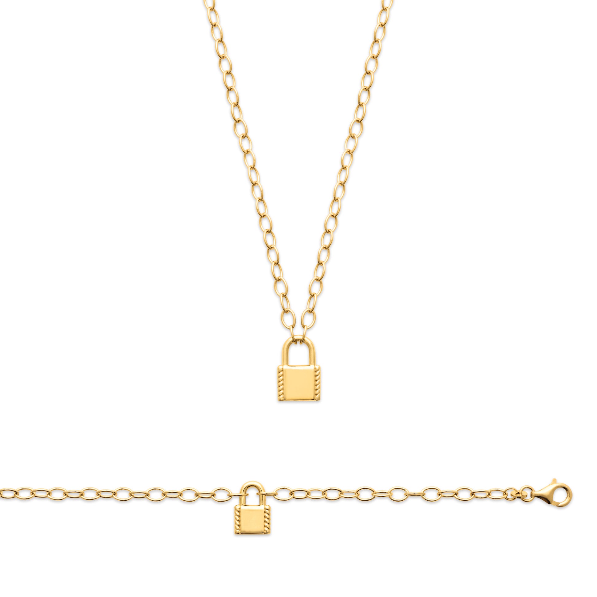 Изискано позлатено колие с миниатюрна висулка във формата на катинар – модерен акцент за вашия стил.